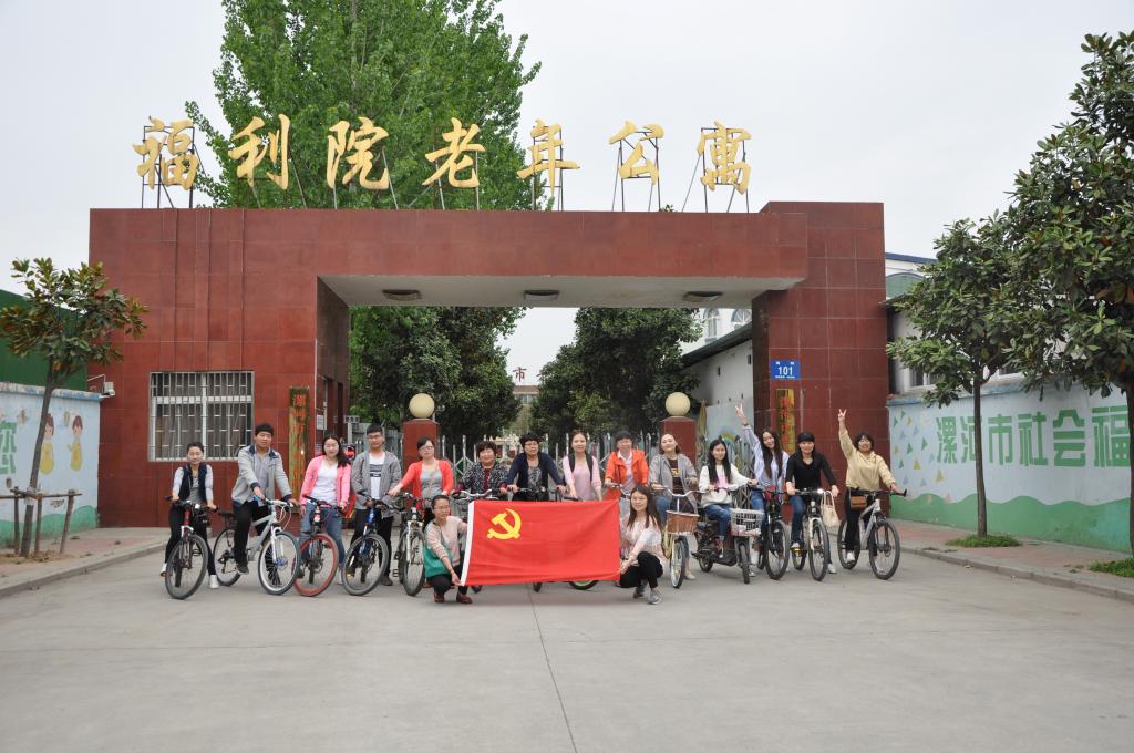 为深入开展“两学一做”党员主题日活动,践行社会主义核心价值观,2017年4月20日下午,竞技宝JJB党总支在党总支书记田玉枝带领下,组织下午没课的教师党员和员工党员骑自行车到市福利院开展了献爱心活动。